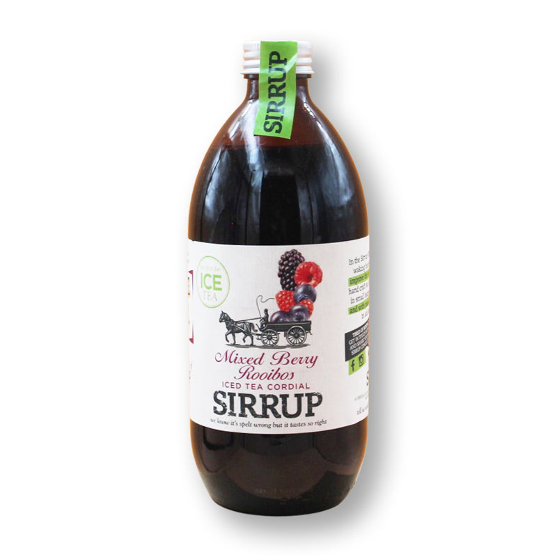 This Mixed Berry Iced Tea Sirrup is sugar-based simple syrup, that we have infused with a juicy blend of mixed berries and Rooibos tea extract.